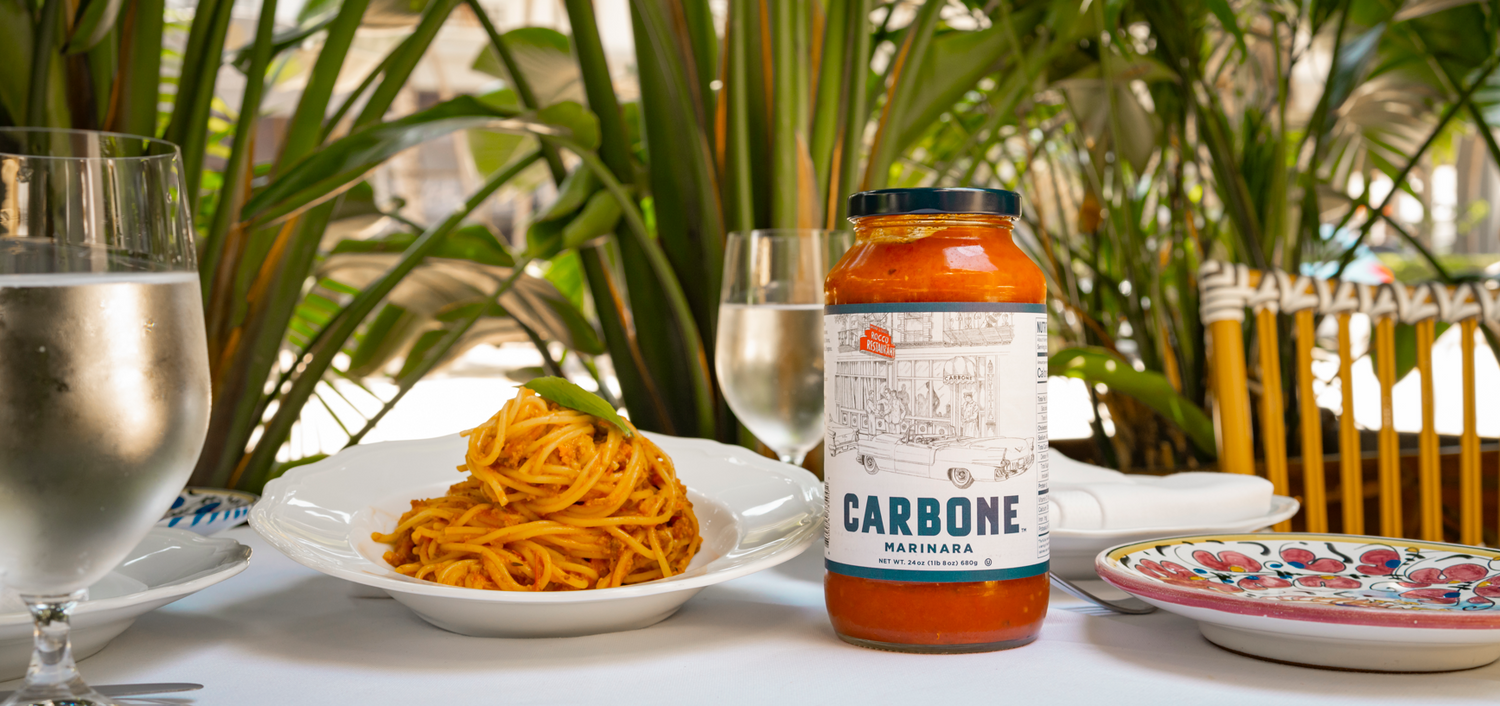 5. Add the cooked meats, Carbone Marinara Sauce, and picked herbs. Bring to a boil. Reduce the heat to low and simmer for 45 minutes.