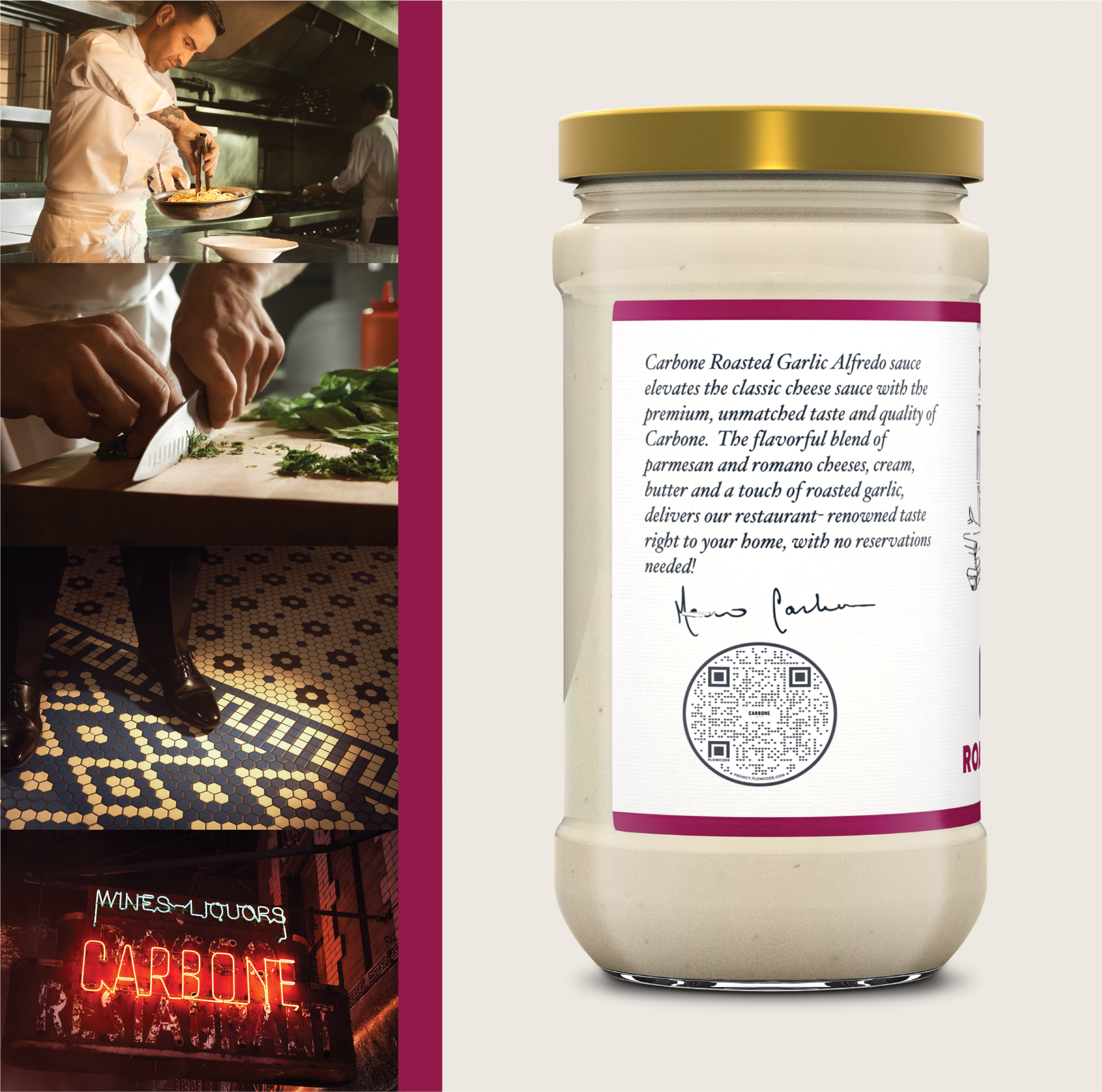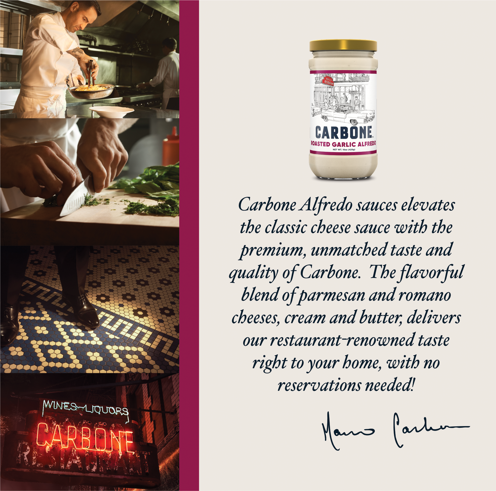 Carbone Roasted Garlic Alfredo sauce elevates the classic cheese sauce with the premium, unmatched taste and quality of Carbone. The flavorful blend of parmesan and romano cheeses, cream, butter, and a touch of roasted garlic, delivers our restaurant-renowned taste right to your home, with no reservations needed!