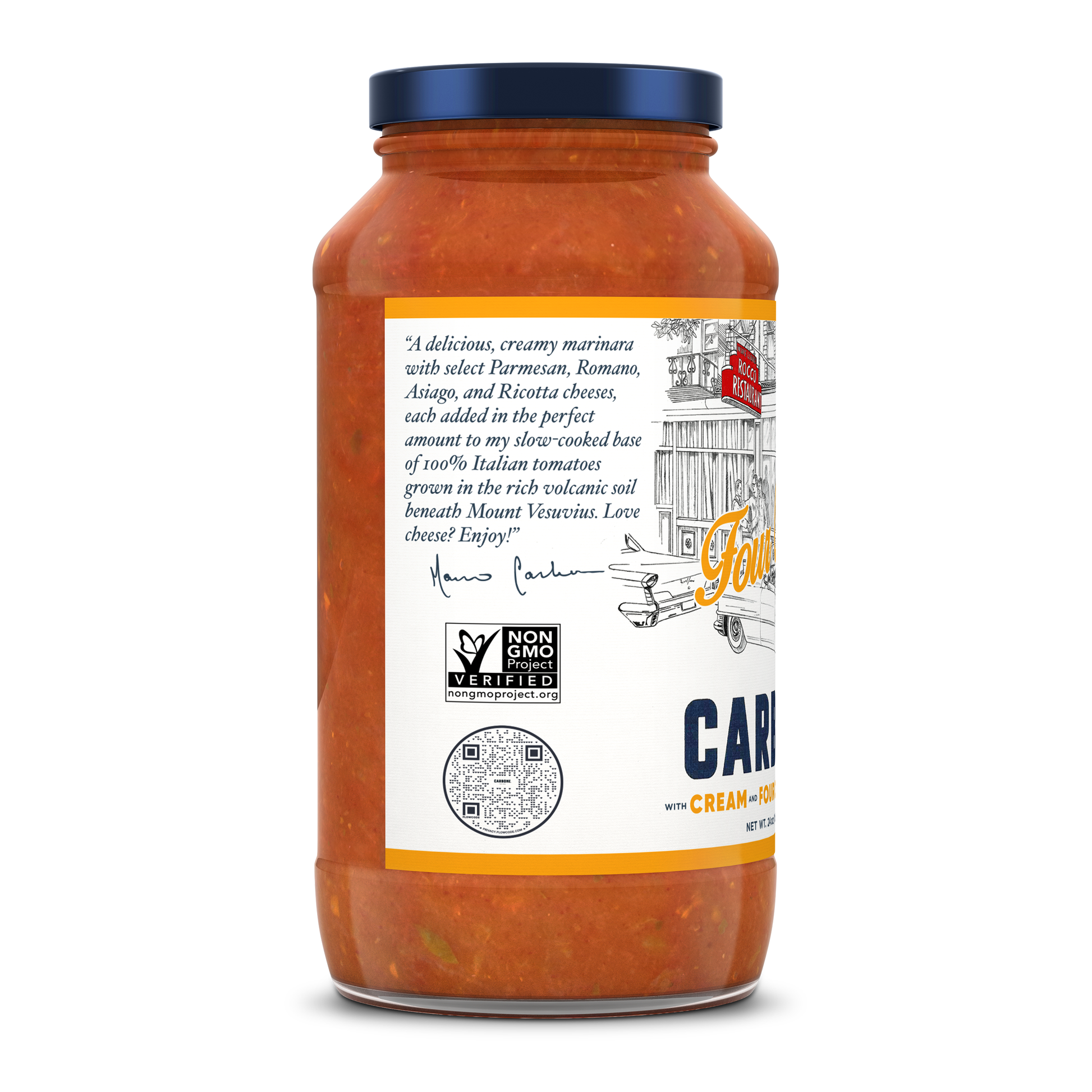 Carbone Four Cheese will excite your palate with the sweet and flavorful blend of 100% Italian Tomatoes and four, classic Italian cheeses. Slow-cooked to bring out a richness in flavor, this Four Cheese sauce will have everyone craving more.