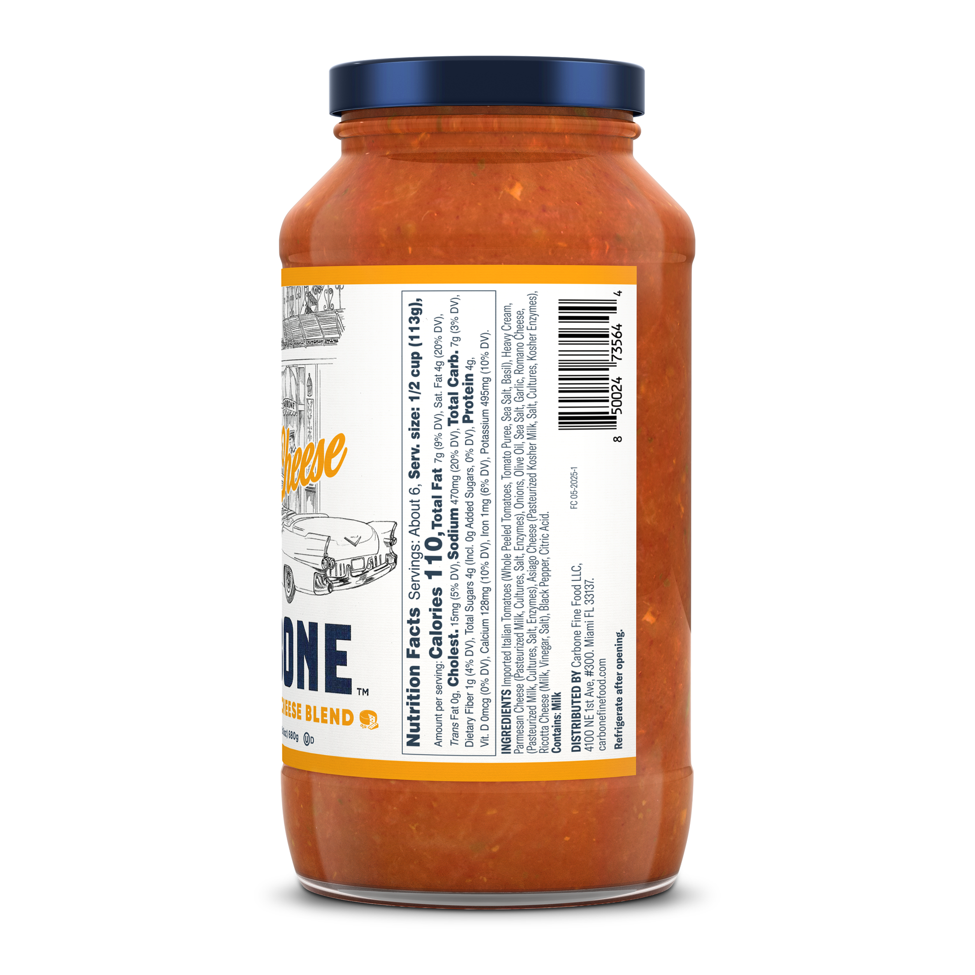 Imported Italian Tomatoes (Whole Peeled Tomatoes, Tomato Puree, Basil, Salt), Heavy Cream, Parmesan Cheese (Pasteurized Milk, Cultures, Salt, Enzymes), Onions, Olive Oil, Sea Salt, Garlic, Romano Cheese (Pasteurized Milk, Cultures, Enzymes), Asiago Cheese (Pasteurized Kosher Milk, Salt, Cultures, Kosher Enzymes), Ricotta Cheese (Milk, Vinegar, Salt), Black Pepper, Citric Acid. Imported Italian Tomatoes (Whole Peeled Tomatoes, Tomato Puree, Basil, Salt), Heavy Cream, Parmesan Cheese (Pasteurized Milk, Cultures, Salt, Enzymes), Onions, Olive Oil, Sea Salt, Garlic, Ronamo Cheese (Pasteurized Milk, Cultures, Enzymes), Asiago Cheese (Pasteurized Kosher Milk, Salt, Cultures, Kosher Enzymes), Ricotta Cheese (Milk, Vinegar, Salt), Black Pepper, Citric Acid. CONTAINS MILK