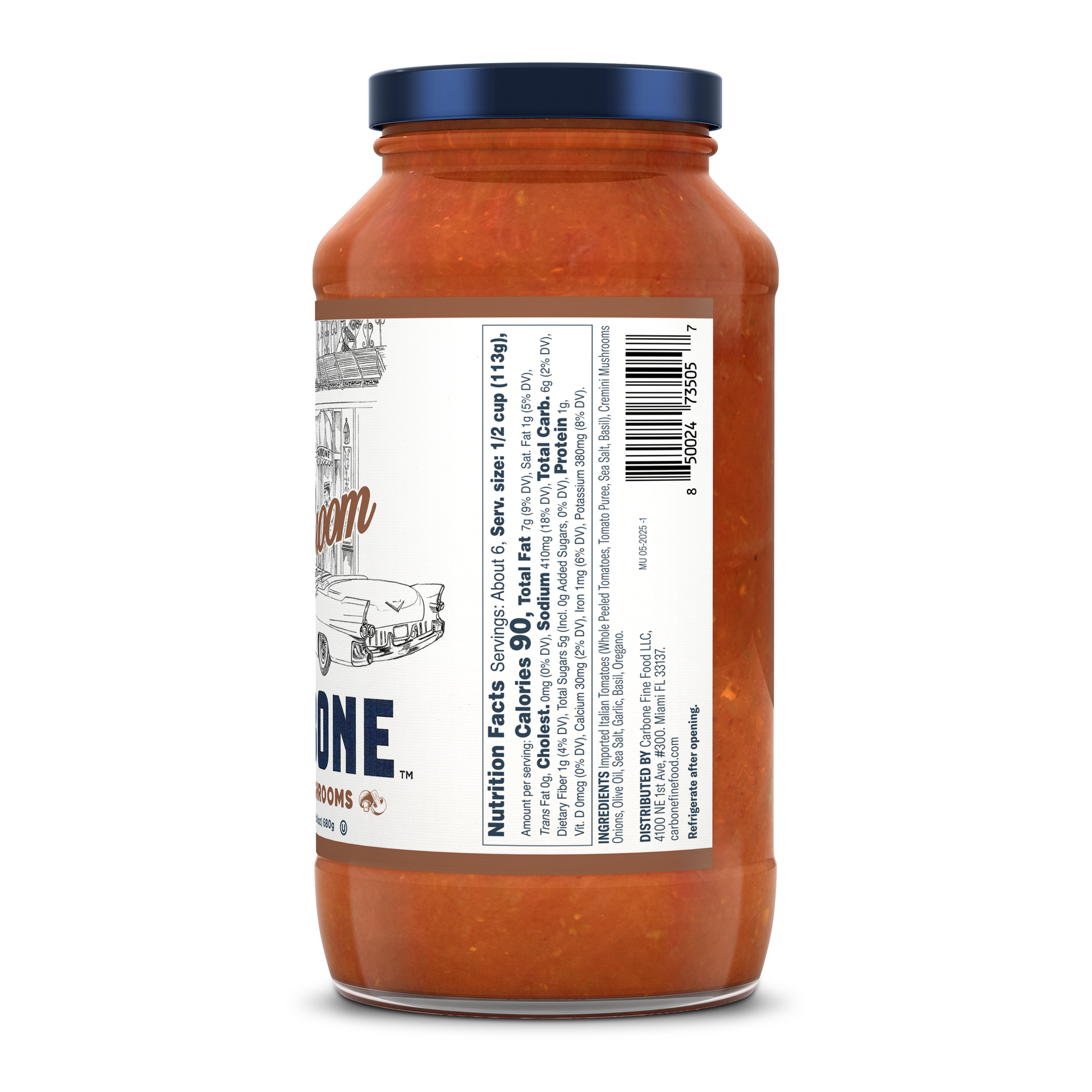 Carbone's Mushroom sauce is an 'earthy' variation of our traditional Marinara. Made from imported Italian tomatoes, slow-cooked to perfection and stocked with mature cremini mushrooms, the 'woodsy' flavor is delicate, yet discernible. Mushroom lovers will delight.
