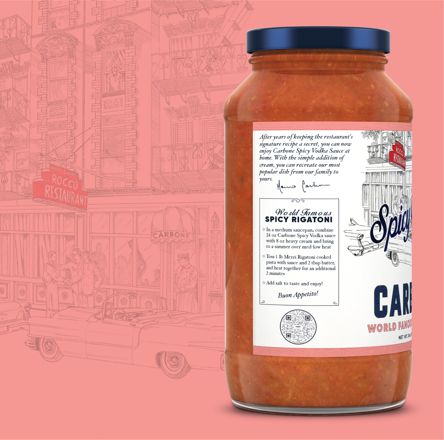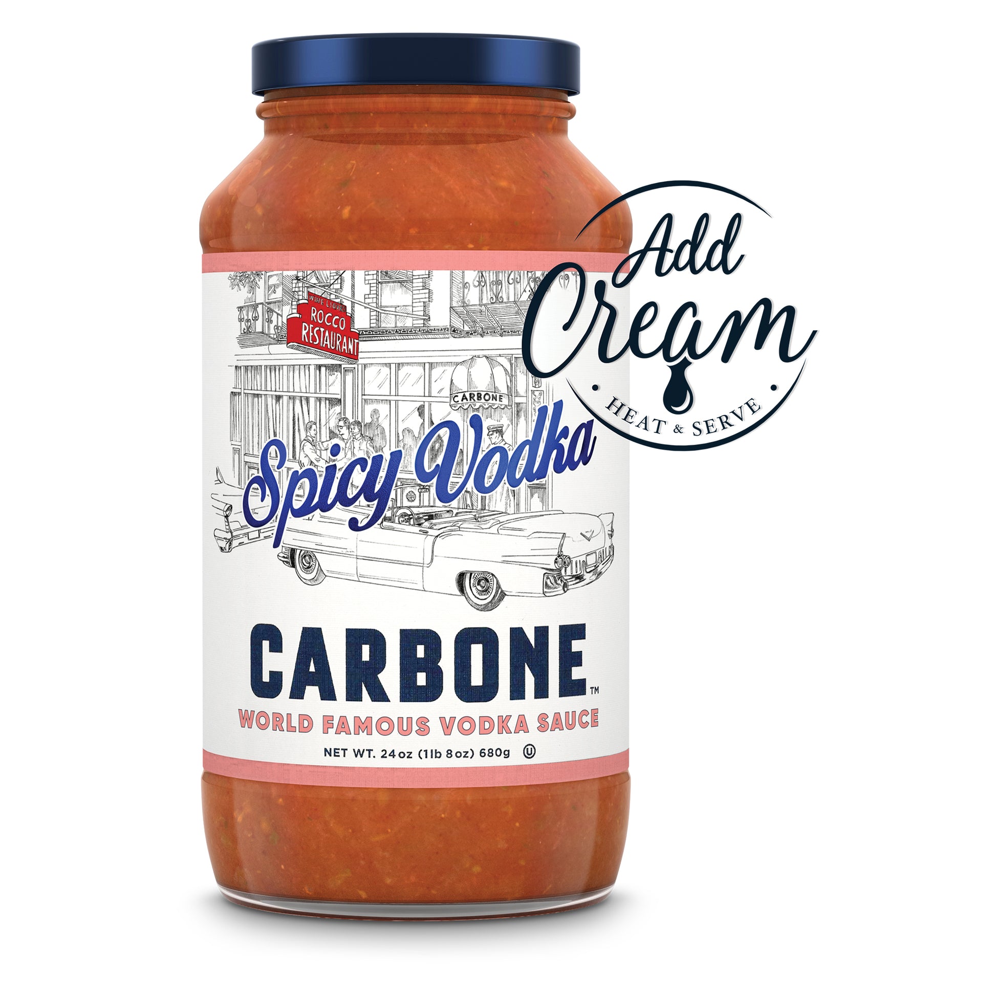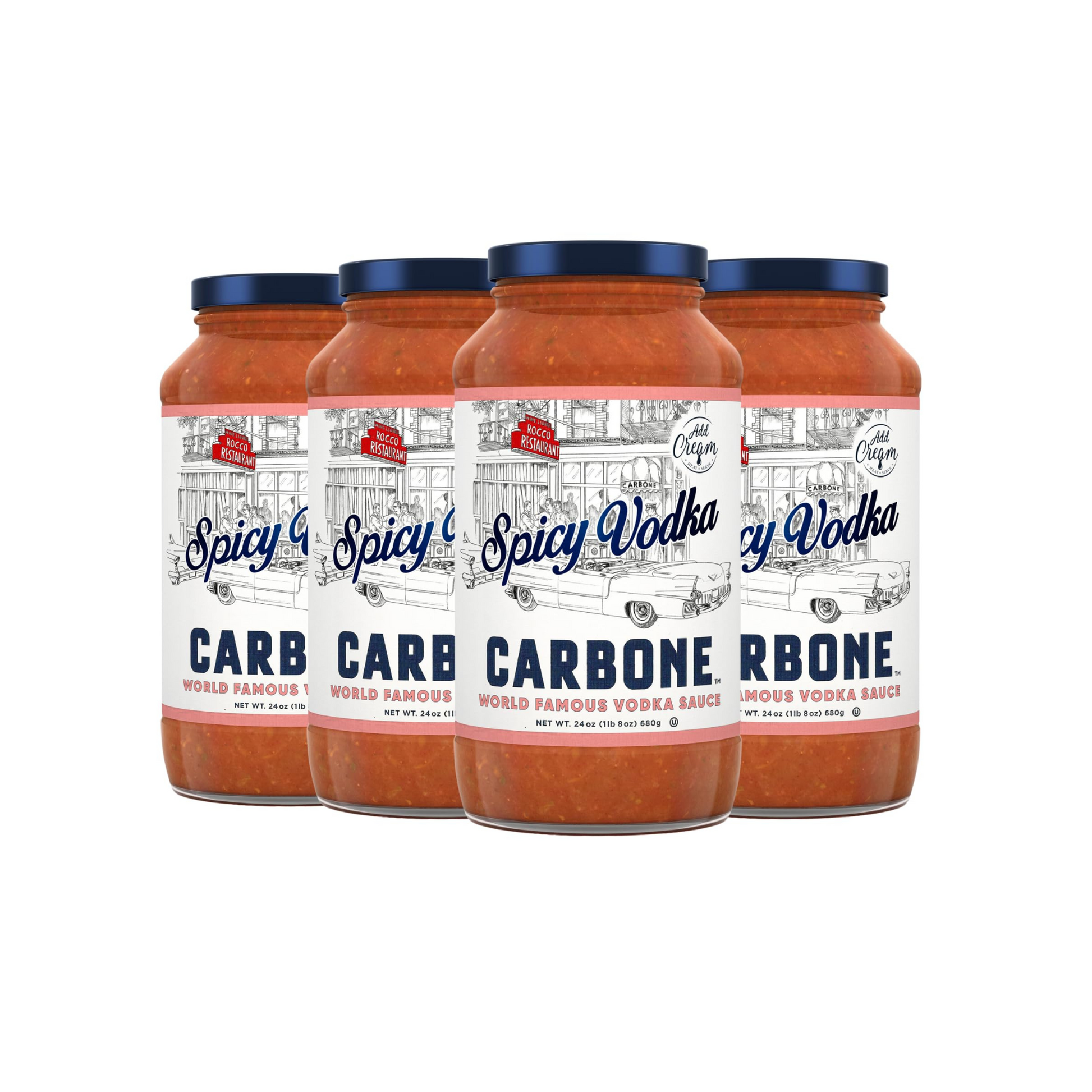 After years of keeping the restaurant's signature recipe a secret, you can now enjoy Carbone Spicy Vodka Sauce at home. With the simple addition of cream, you can recreate our most popular dish from our family to yours. Bringing together the sweet flavor of 100% Imported Italian tomatoes with the heat of Calabrian Chili, Carbone Spicy Vodka Sauce truly delivers on the promise of unequaled flavor with a depth of flavor only found in Spicy Rigatoni dishes at Carbone restaurants.