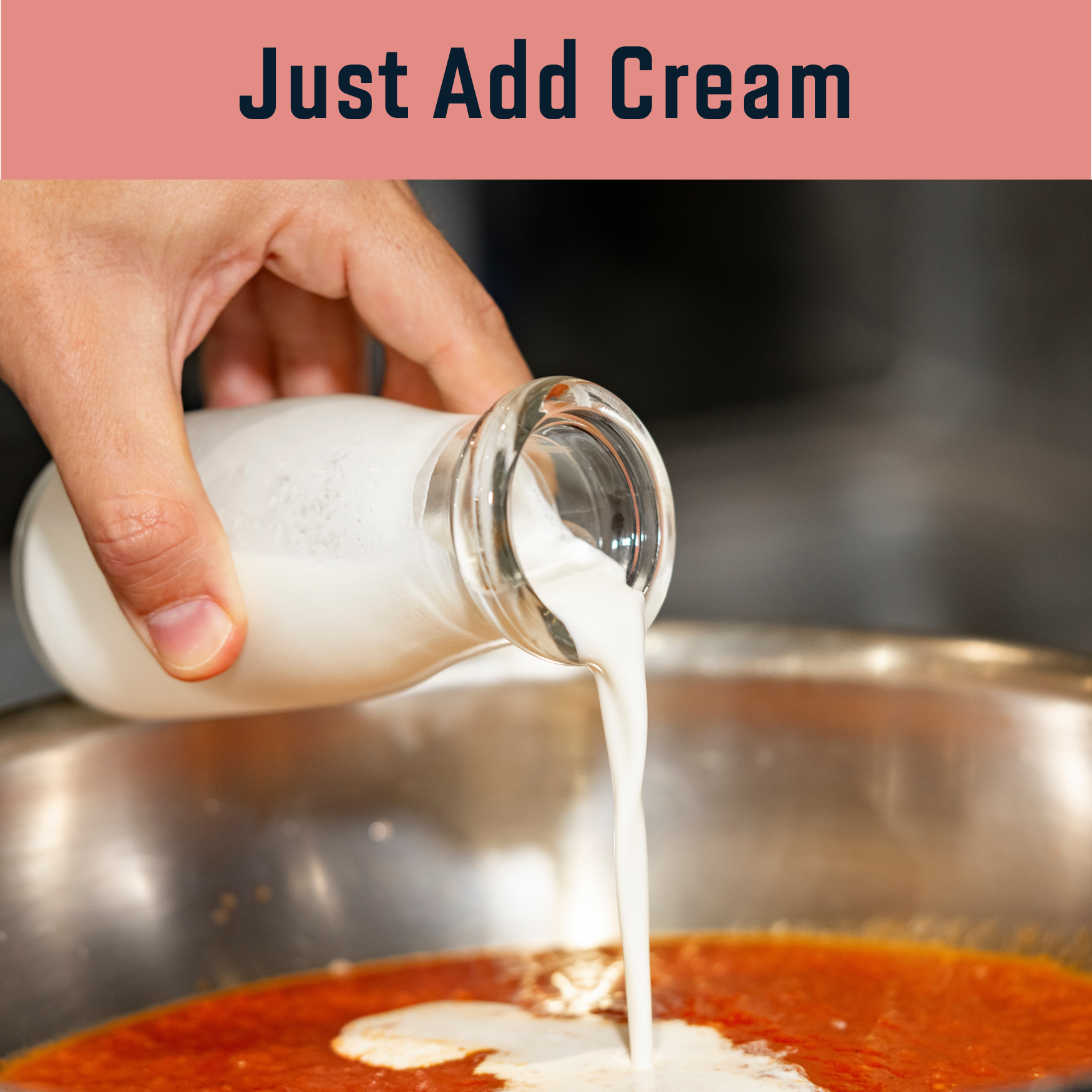 Imported Italian Tomatoes (Whole Peeled Tomatoes, Tomato Puree, Basil, Salt), Onions, Sugar, Calabrian Pepper Spread (Peppers, Sunflower Oil, Vinegar, Salt), Sea Salt, Olive Oil, Garlic, Vodka, Black Pepper.