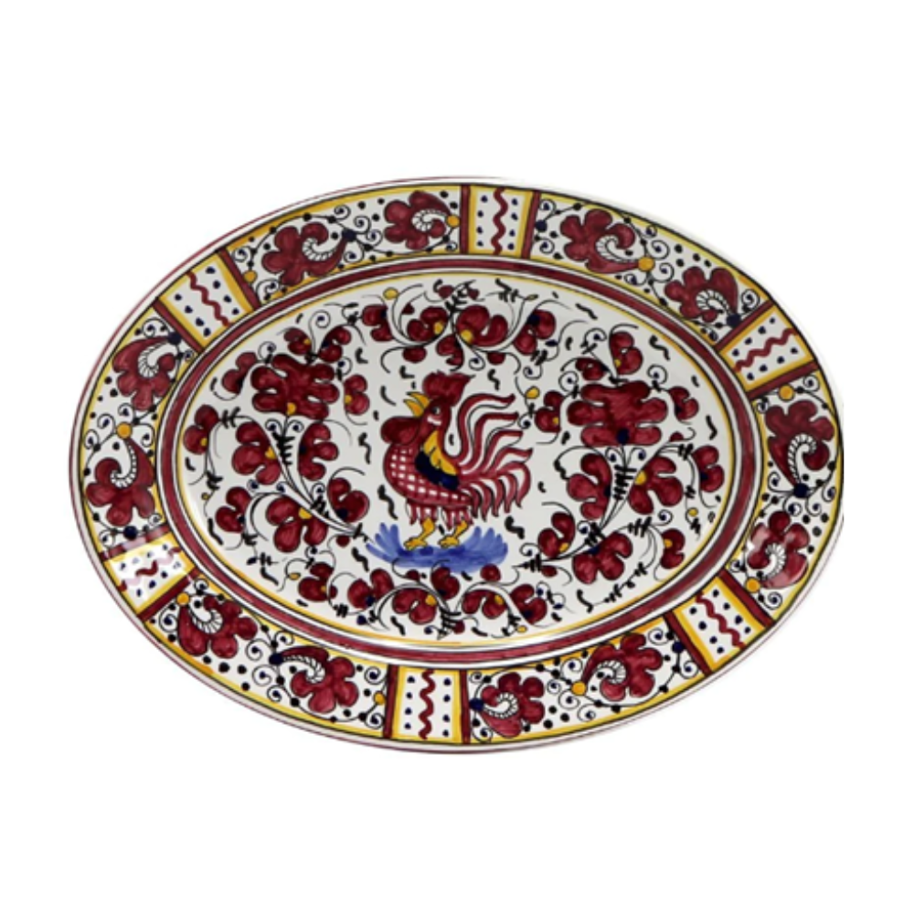 - Authentic Italian, Hand-painted Oval Rooster Platter (will arrive in red or blue)